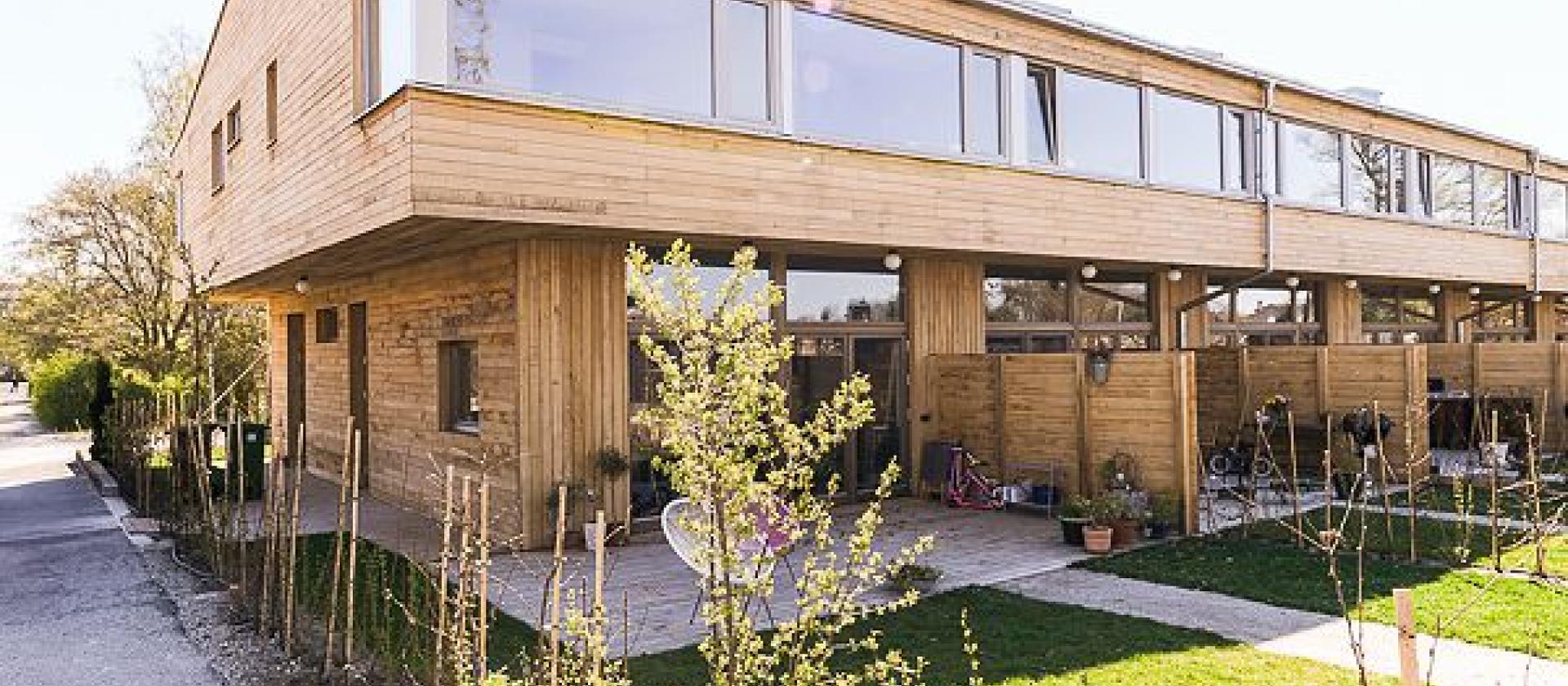 Radhusprojektet Brf Shiitake – Solbacken i Malmö är individuella och unika radhus som delar en gemensam gård med växthus, pool, ateljé/verkstad och odlingsbäddar.