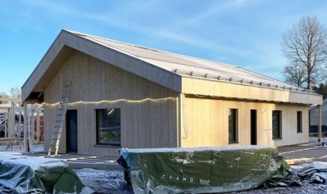Huset är stomrest och man börjar skymta hur det blir när det är klart.